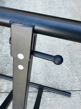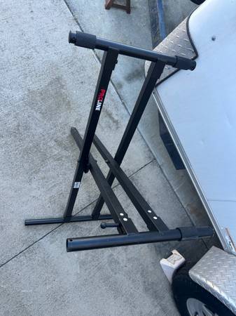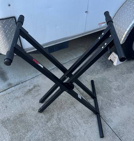 This is a Proline PL4KD Keyboard Stand Double Brace. These sell for $84.99 new. This one works great but is missing one bar on the bottom. It works fine as it is. Has a nice easy to use lever for locking and unlocking the stand. But of course if you want to try and find a bar to put on the bottom you could. For this reason, I am selling it for $20.