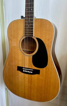 Early 1990’s Takamine Jasmine ES-40 Acoustic Electric Guitar Full Size Dreadnought. Spruce Top, Mahogany back and sides. Volume and tone control. Electronics work great. Has new Elixer Coated...
