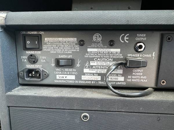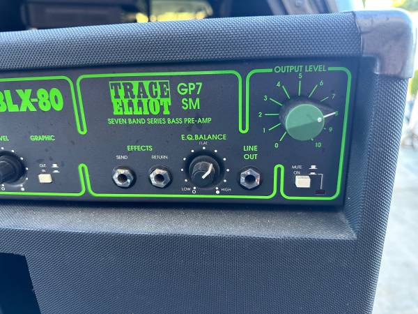 Trace Elliot BLX-80 Bass Amp Combo Made In England. BLX-80, and uses the GP7SM 7 band series bass pre-amp. The amp is 80 watts RMS, and with an extension speaker (8 ohms) will put out approx. 160 watts max.
