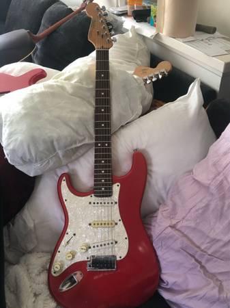 Left-handed Fender Stratocaster made in USA, Candy Apple Red, Maple fretboard, All original stock pick ups and pots, Recently put on a Plek machine and set up with 9.5 gauge strings, 1991 model with case, $750 or best offer… This lefty Strat has 34 years of MOJO tone!
