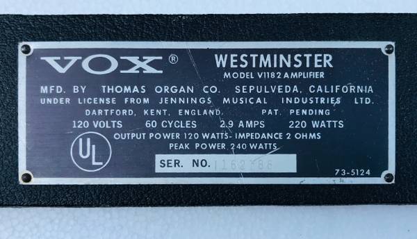 Vox Westminster Amp Head Back Panel for 60’s Amplifier Text me to see it