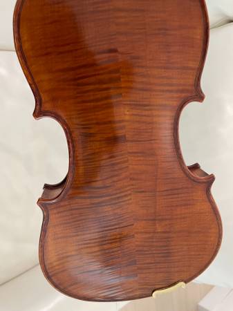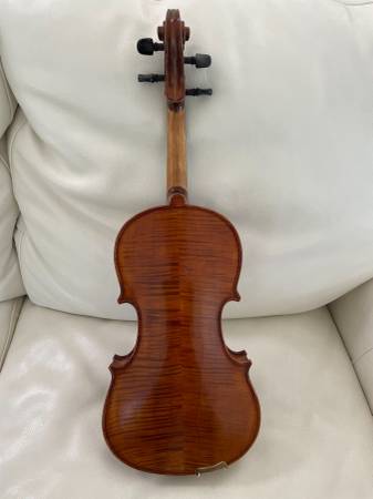 Very pretty flame pattern on back. Excellent condition with big booming sound. Tuned and ready to play. Price includes violin, bow and case.