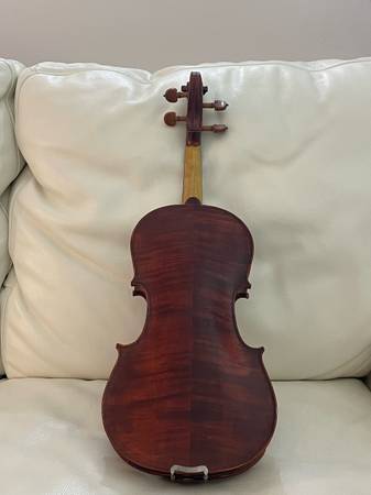 In excellent condition with beautiful flame pattern on back. Excellent booming sound. Tuned and ready to play. Price includes violin, bow and case.