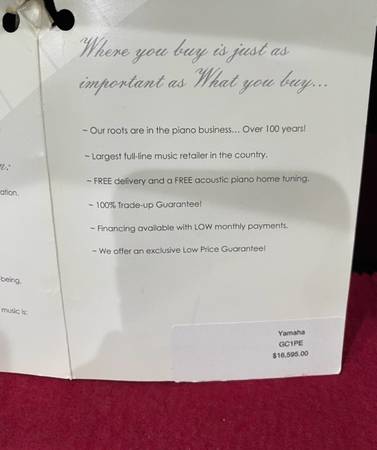 Serial #5996386 This Yamaha GC1 in polished ebony is a high-quality grand piano with an excellent tone that is both rich and dynamic, making it a joy to play. Its touch is highly responsive, allowing for precise control and expression across all playing styles. This piano’s polished ebony cabinet is in perfect, like-new condition, adding a touch of elegance to any setting. Suitable for all players from beginner to advanced levels, this Yamaha GC1 offers beautiful craftsmanship and performance at an accessible size.