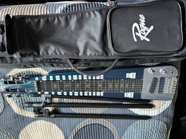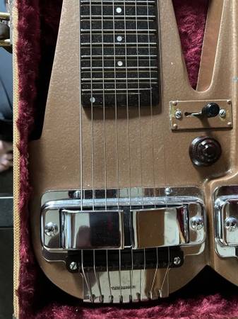 Make me an offer. Late 30’s/early 40's vintage double neck 8-string Richenbacher B-16 Electro guitar, original case. Made in L.A Ca. from 1934 to 1949. Sounds awesome….Amazing 1/1/4" horseshoe magnet pickups, Bakelite neck with hollow copper flake metal body, Kluson deluxe single line tuners, OHSC California West Craft Luggage linen case. Lap steel stand. new strings, two original slides, lesson books. Comes with new Rogue practice lap steel with legs and gig bag. steel and gig bag. all accessories… if its posted its available. I will only respond to legitimate trade (firearms, acoustic guitar, high end fishing gear...or???) or cash offers. There are a few B-16 adds on eBay right now just the guitar for $1500+.