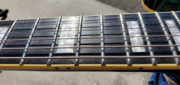 Neck: mahogany, ebony board, 24.75" scale, 12" radius, 1959 profile