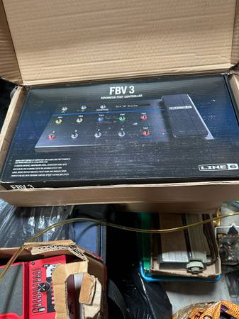 * "The "Line 6 FBV 3" is an advanced, rugged foot controller for Line 6 guitar amplifiers and effects, designed for hands-free operation on stage. It features 13 footswitches (five with assignable color LEDs), a built-in expression pedal with a wah/volume toe switch, a tap tempo switch, and a bright, backlit LCD display. The controller connects to compatible Line 6 gear with a single cable for both power and communication."