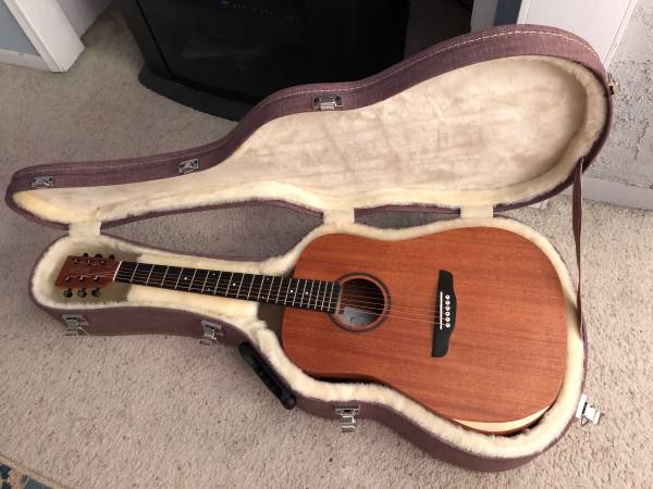 "New" Custom Folk Dreadnought Guitar handmade in Brazil with hardshell case. Solid mahogany top, back, and sides, Cedar neck, Purpleheart fretboard, Matte finish, and Fishman INK electronics. Please provide your contact# with inquiries or your email will be ignored.
