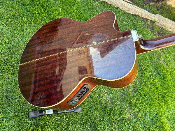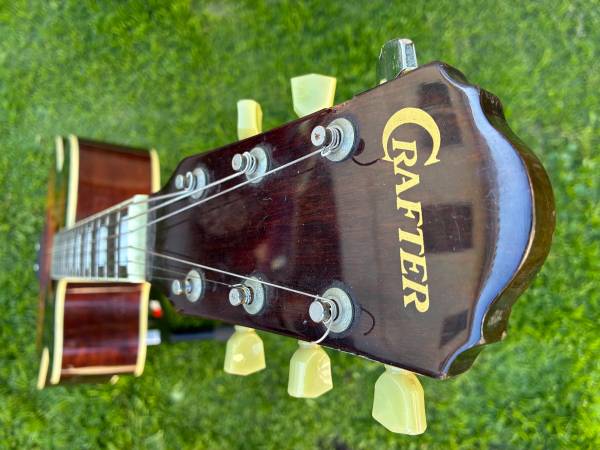 Crafter acoustic / electric guitar model SJC-390 EQ, MIK from 2000. This a rare Korean copy of the Gibson SJ series and made very well. These guitars are usually found at prices ranging from $500 to $800 on Reverb and eBay but the electronics in this one need servicing as the output is very low, which is why the price is much less. There is also a binding repair on the rear, lower bout as well as a chrome tuning head which are both shown in the photos. No case.