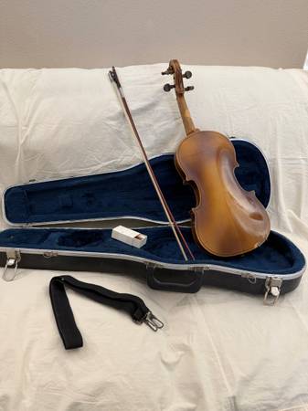 Suzuki 4/4 size violin outfit tuned and ready to play. Outfit include violin, bow, rosin, case. and case strap. Cash only