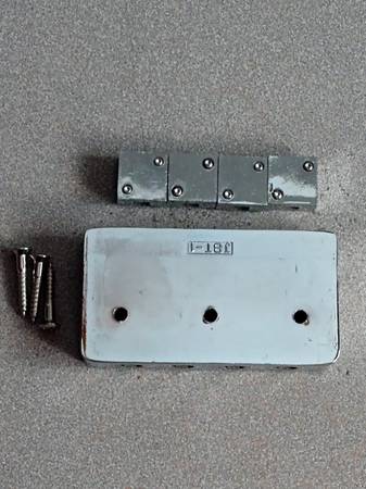 3 x Bass Guitar Bridges - $10 each 1) The 1st bridge with 5 screws is labeled: - SOLD Fender or Squire Jazz Bass - $10 New 2) The 2nd bridge with 7 screws is labeled: Fender 4 String Bass - $10 New...