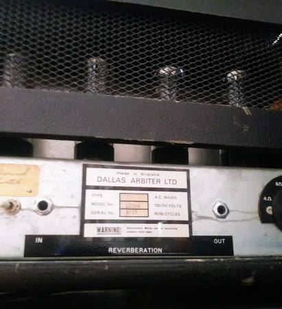 Dallas Arbiter LTD, Dave Reeves era, made in England, model L100W, Partridge transformers, all original, sounds marvelous, excellent condition.