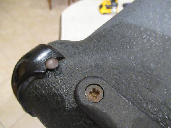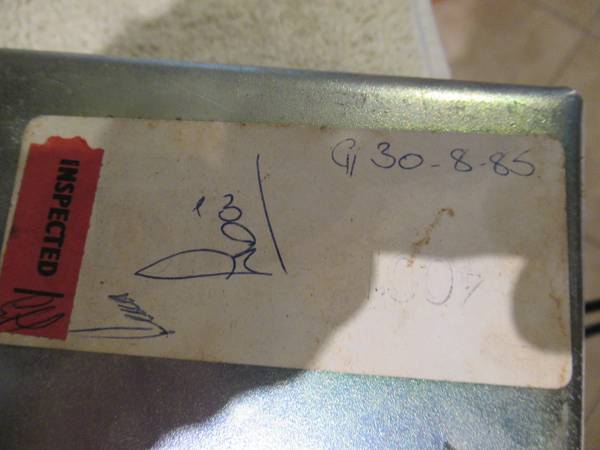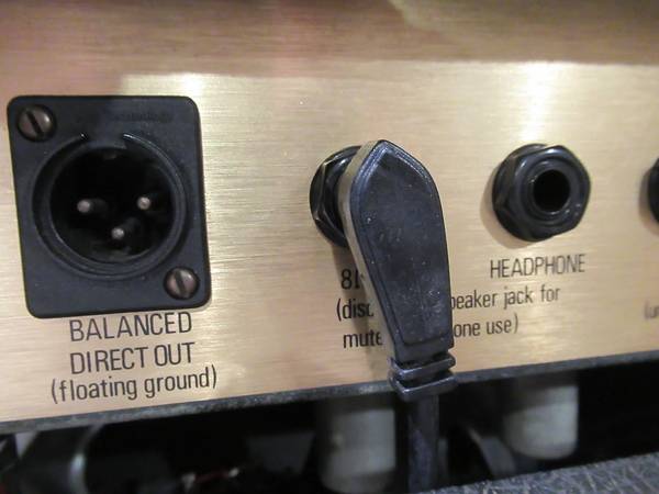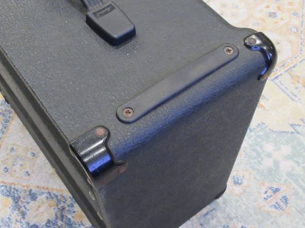 One of the front corners has a broken tab. Feet have been replaced with larger/softer ones to fit over the handles on extension cabinets. As a security measure, the prior owner etched a personal ID number on the back plate next to the fuse cap (really stupid). It is now covered with black electrical tape.