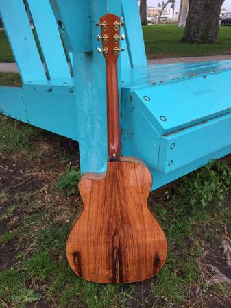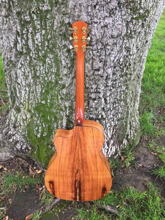the top is Sitka Spruce, headstock overlay is also Palo Escrito, the neck is mahogany with a slight flame to it.