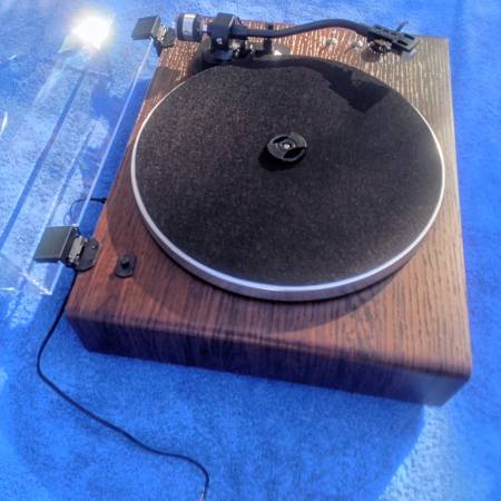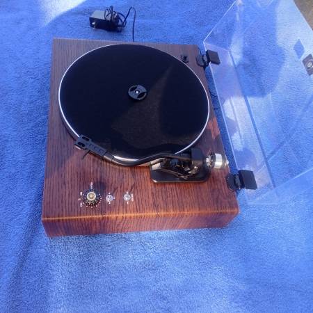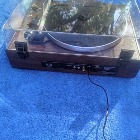 This turntable is a 3 speed record player with modern multiple power ports, including speakers, MP3, and auxiliary. It is less than a year old and only used once. I will include a 1987 Whitesnake 45 record. You call listen to it play. It comes with a user manual. $100. Call or Text only.