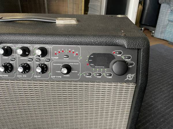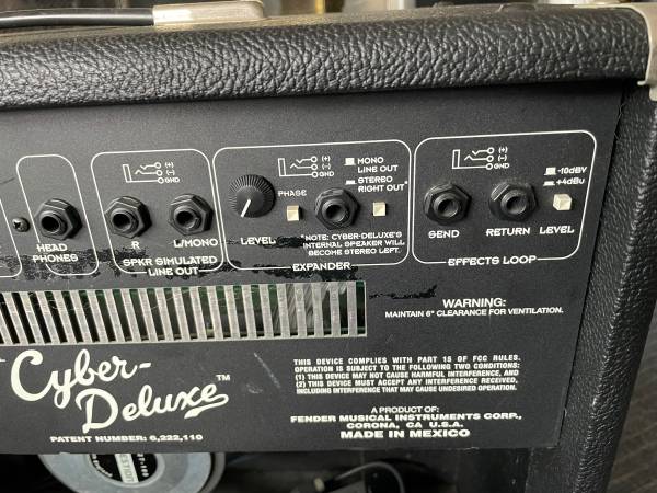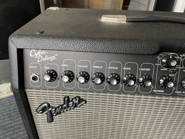 Very nice Fender Cyber-Deluxe 65-Watt guitar amplifier with Fender Cyber-Foot floorboard Controller. Clean, no issues. Unique amplifier can be paired with another amp for stereo operation. Effects fully editable from front control panel. Includes 4-button foot switch and a copy of the manual.