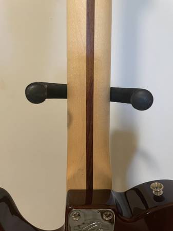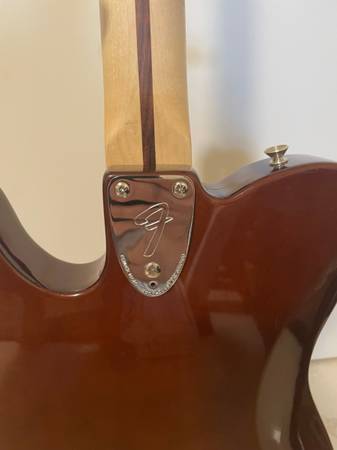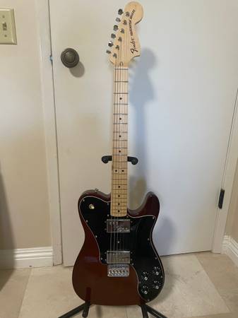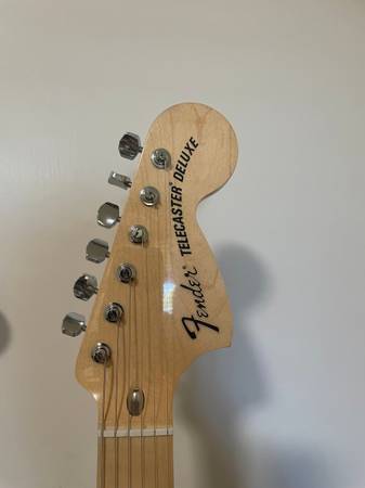 For sale is a Fender 72 Telecaster Deluxe RI Partscaster in very good condition with a walnut finish. There are some minor finish flaws pictured with some finish cracking near the neck pocket. The neck is a 2020 model with a 12" radius and C shape, and the body is a 2008. If you prefer modern Fender tuning machines, the headstock has dual pin holes underneath the tuning machines installed. The truss rod is in good working order, and all electronics work fine. The input jack has been upgraded to an Electrosocket. No case. $500 firm.
