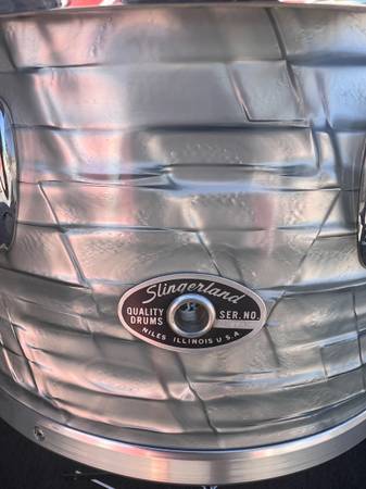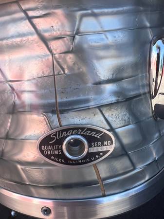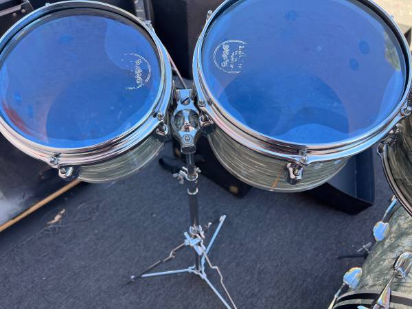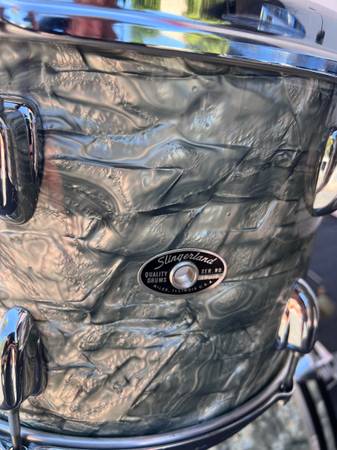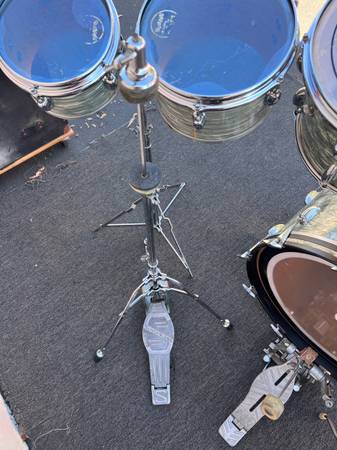 Slingerland 7 pc drum set, black diamond pearl wrap. Silver and black badge, Niles, IL