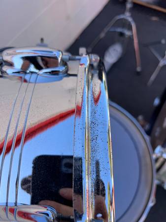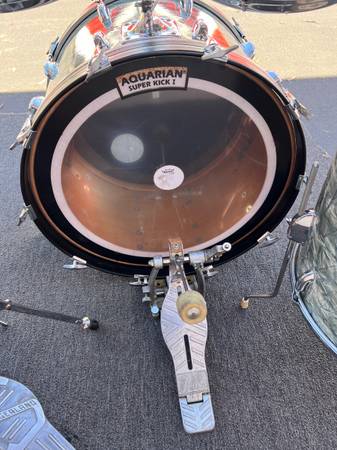 Set is in very good shape. The wrap on the concert toms have cracks. The shells are not affected.