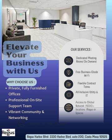 Call or text Joe Regus Harbor Blvd- 3330 Harbor Blvd, suite 200, Costa Mesa 92626 Window office for 3 ppl starting at $980 per month including parking! Free Parking, everything else included in the...