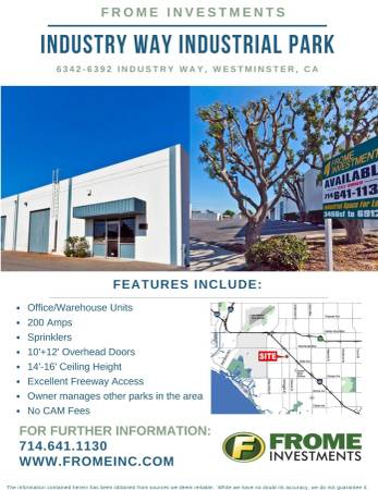 2,500 sq. ft.6350 Industry Way, Unit A, Westminster, CA 92805
