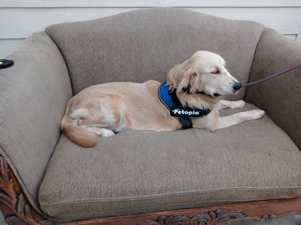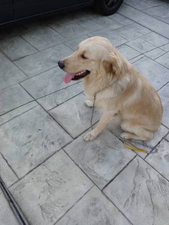 About 3 year old golden retriever a female and a male Available. All the shots and vaccination done. Very friendly and playful dog. We have to move. Rehoming fee $600 Please text me (714) 9OO - 3547...