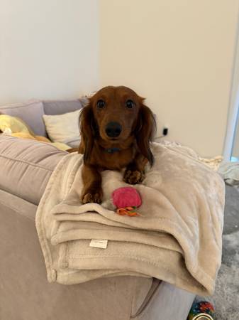 Meet Loui, a 1-year-old long-haired red miniature dachshund with a sweet, friendly personality and a stunning silky coat. Heโs smart, loyal, and well-socialized โ a great representation of the breed.