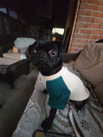 Black pug, male, about 2 years old, great with other pets, good around people as well. Very playful & energetic. Message if you have any questions.