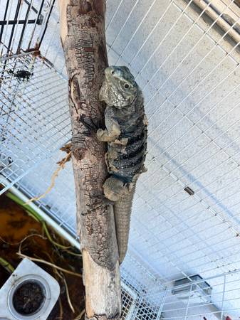 Up for grabs 2 iguanas. 1 is a male rhino, the other is a high blue lewisi hybrid female