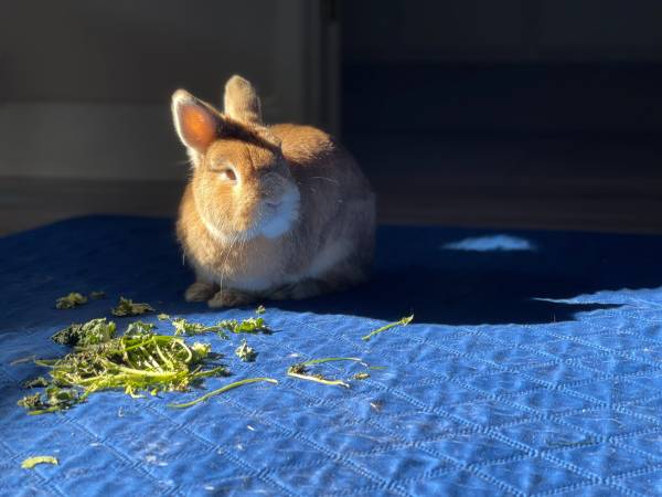 Please help me find my lost bunny! She is about 3 pounds, almost 7 years old, and around the size of a football. She's orange with white markings and is a Netherland Dwarf rabbit. Her name is Charlie, but she also answers to "Chichi." She is shy and skittish -- and fast. She's microchipped.