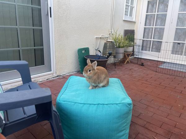 Help me locate my lost bunny! Charlie, who answers also to "Chichi," went missing (escaped through a doggie door, most likely) on Wednesday, 11/26 from our home on Cypress Tree Lane in Irvine. She is almost 7 years old, a Netherland Dwarf rabbit, and is about 3 pounds -- roughly the size of a football. She is orange with some white markings -- see photos.