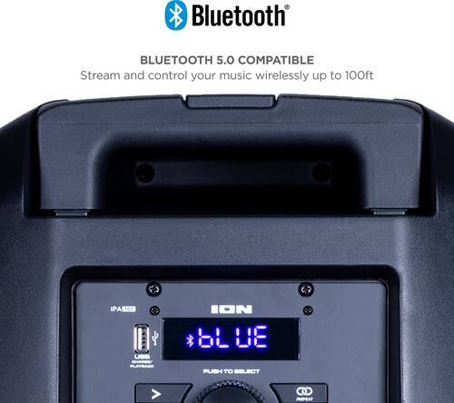 This is the ultimate party speaker! The Total PA™ Ultimate wireless speaker has ION’s new Edge Glow technology with 10 separate light modes that produce unique lighting effects in multiple colors and the lighting will dance in sync to the beat of your music choices! Total PA™️ Ultimate features ION Audio's Sonic Wide Audio™️, the new, innovative technology purposefully designed to provide premium sound to the front, left, and right of the speaker. To immediately enhance and customize your sound, the One-Touch User Interface provides a simple control knob for all sound adjustments. You can also wirelessly connect a second Total PA™️ Ultimate speaker via ION's Stereo-Link™️ technology feature. You can also download the ION Sound Control™ app to control the audio and lighting of your new Total PA™ Ultimate. This powerful Bluetooth® speaker is perfect for Karaoke. Just connect the The microphone inputs have voice echo effects built-in making for perfect vocal duets.