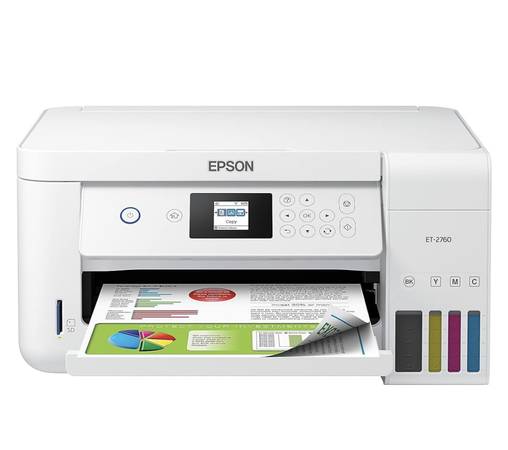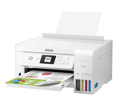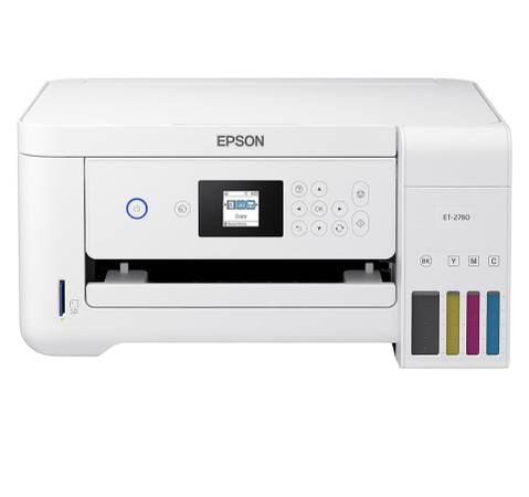 The Eco Tank ET-2760 offers Cartridge-Free Printing with easy-to-fill supersized ink tanks You can save up to 90 percent with low-cost replacement ink bottles ― costing as little as 1 cent per color ISO page versus 20 cents with ink cartridges (1) Plus you can get up to 2 years of ink with the included or a replacement ink set (2) Each replacement ink bottle set includes enough ink to print up to 7 500/6 000 pages (bk/clr)(3) ― equivalent to about 80 individual cartridges (4) That means less waste and fewer trips to the store Exclusive uniquely keyed Eco Fit bottles make it easy to fill each color tank You also get auto 2-sided printing and copying a 1 44" color display and wireless connectivity