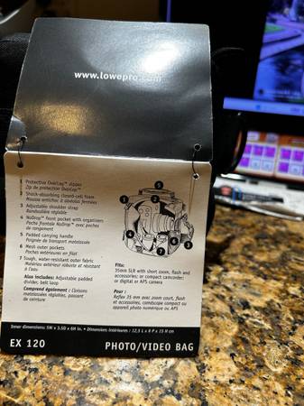I have a vintage 2003 Lowepro EX120 camera bag, black nylon w/ shoulder strap brand new never used Local pickup only
