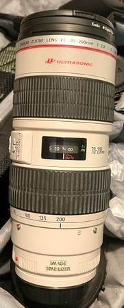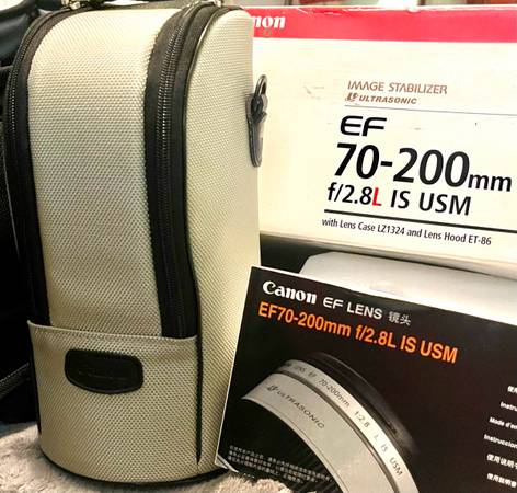 This is a genuine Canon EF 70-200mm f/2.8 L IS USM zoom lens in excellent working and optical condition. The glass is clean and clear. Minor cosmetic wear only from normal use. Comes in original box with soft case, lens caps, ET-86 hood and tripod mount.