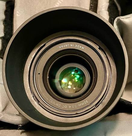 The Sigma 30 mm f/1.4 DC DN is a fast, versatile prime lens designed for various APS-C and Micro Four Thirds mirrorless camera systems, offering excellent image quality and a bright maximum aperture for low-light shooting and creative depth of field control. In excellent working and optical condition. Never used