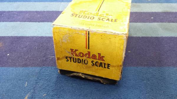 Really nice Kodak Studio Scale. "For Photographic Purposes" and "Made By Eastman Kodak Co" on the metal plate. Comes with all the original weights and trays and in the original box as well. (All though through box is in sort of rough shape as pictures show)