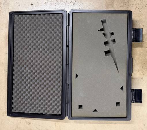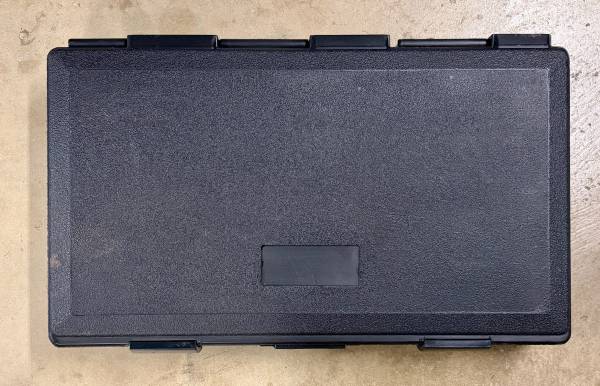 Selling a no-name hard carrying case with foam padding (some shapes cut out). Measures 26” wide by 16” deep by 4-½” thick.