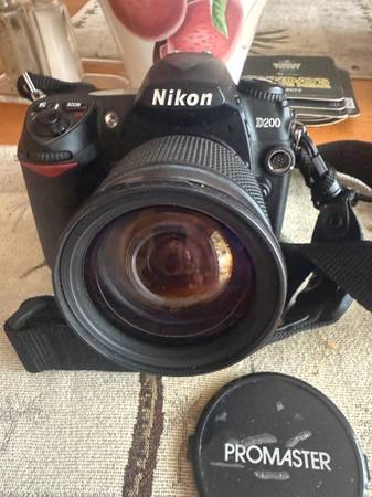 NIKON D200 SLR CAMERA IN GOOD WORING SHAPE!! HAS ONE BATTERY, CHARGER AND CORD!! ONE LENS PROMASTER 28-200MM 1:3.8-5.6 AF!! 4GB CARD!!
