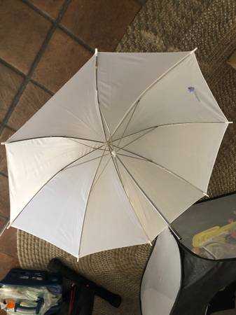 Two Limo Studio Used 33” White Transparent Photo Umbrella Studio Reflector No. AGG124. $20.00 each, will sell as a two item set or individually. Phone