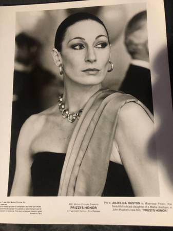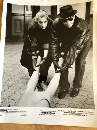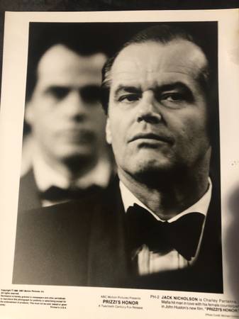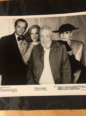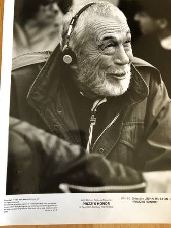Black and white photos of the 1985 Movie Prizzi's Honor. Director John Huston on set, Hollywood stars: Angelica Huston, Jack Nicholson, Kathleen Turner. Photo Credit John Bryson. Printed in U.S.A....