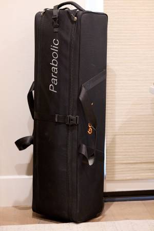 Designed for fashion and portrait photographers, the Parabolic 158 Reflector Kit from Godox offers clean and specular highlights while also providing a broad light source that wraps around your subject. The reflector features a highly reflective silver interior with a 59.1" outer diameter. In addition to the large reflector, this kit includes a PF-M Focusing Mount, PF-R870 Focusing Rod, PF-BM Strobe Adapter, PB-G1 Grip Kit, and a CB35 Carry Bag.