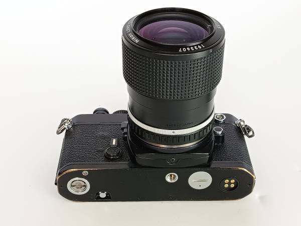 No dings or dents, some brassing on black surfaces. Works nice, including the meter. Your choice of Nikkor 36-72 f3.5 AI-s or Nikkor 50mm f/2 AI lens. $130 Dennis