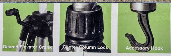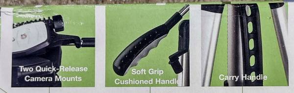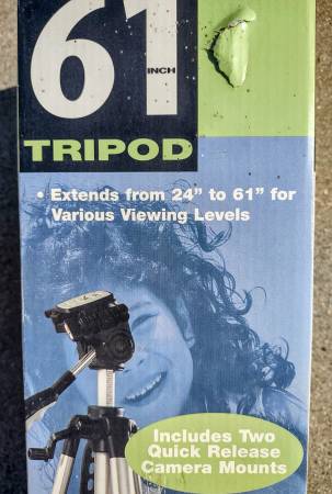 Includes the original box and two quick release camera mounts. Extends from 24" to 61" high for various viewing levels. ****SEE ALL PICS ABOVE FOR ITS FEATURES