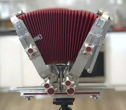 vintage full size 4x5. Easily to fold down to L17.5"x W11.5"x H3.5" the best travel full-size 4x5 camera. made in Germany . All stainless steel track and gear. come with 4x5 film holder ,one...