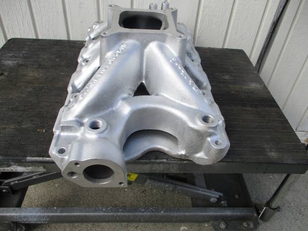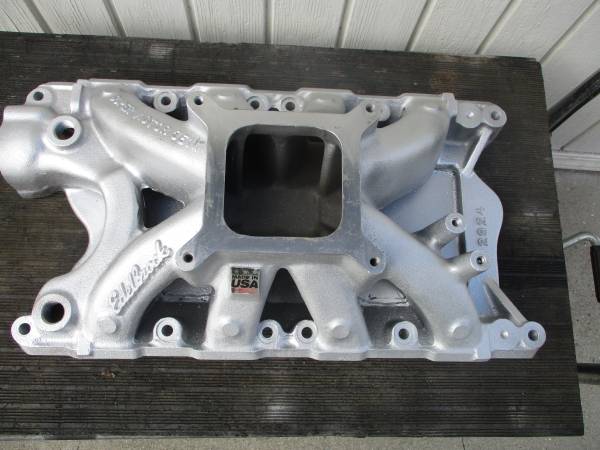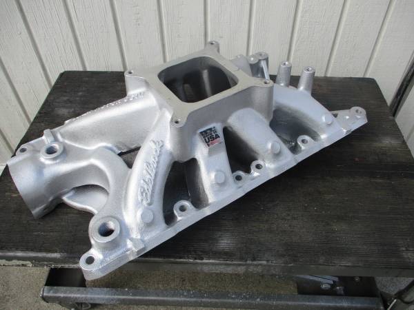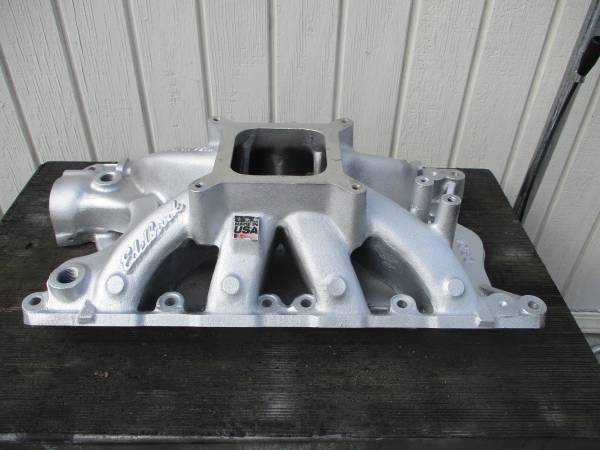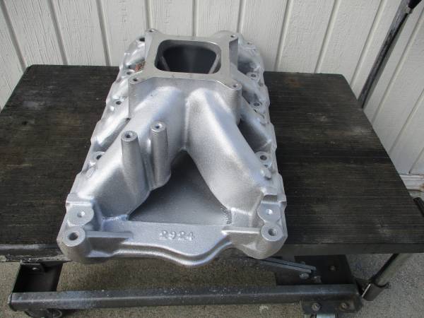 Like new Edelbrock 2924 Super Victor single plane high performance intake manifold. This fit Ford 351 Windsor applications. This is a single plane high rise intake with a power curve from 4500 to 8500 RPM. It is great an a highly modified engine set up like a 408 or 427 stroker. intake was installed on an engine but never run. It is in like new condition. This would cost 550.00 to buy online or from a shop. Save $$$$ on your Ford build up today. Call =for info. Thanks for looking!