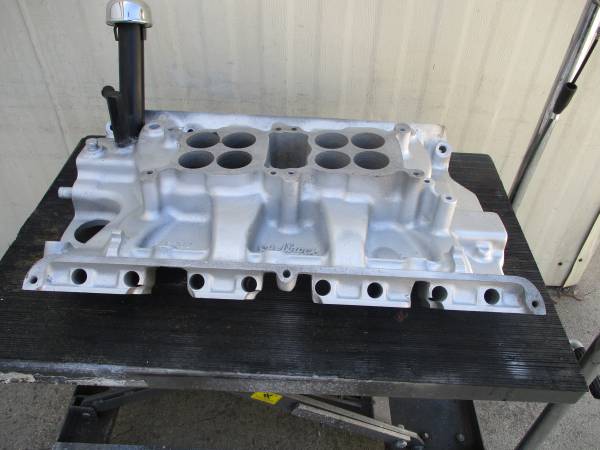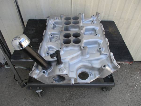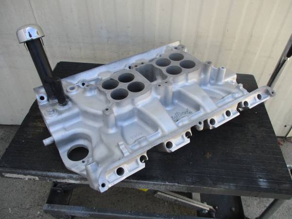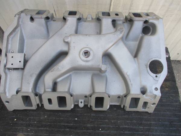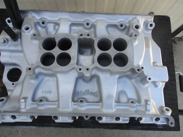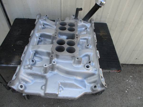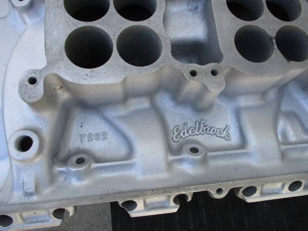 Very clean old school Edelbrock F262 Dual Quad intake manifold. This fits Ford FE 332-428 applications. This takes 2 Carter AFB or Edelbrock carbs mounted in line. This is an old school intake that is no longer made by Edelbrock. A good, clean intake such as this is hard to find. This one is in good condition with no stripped threads, welds, repairs or corrosion. It is ready to install on your cool Ford Gasser or Hot Rod buildup. Call for details. Thanks for looking!