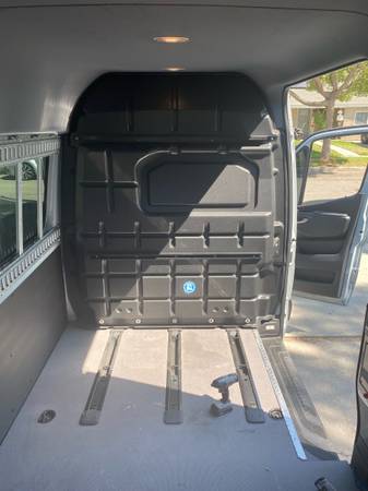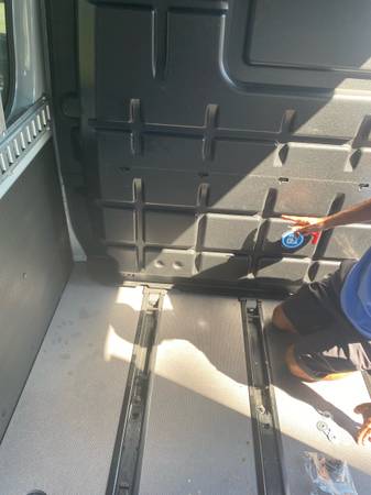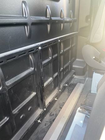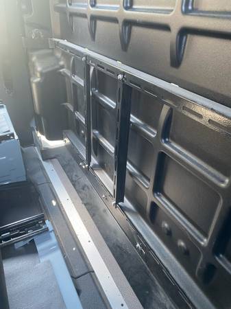 Includes all the brackets and hardware to install. I have pictures of all the hardware installed and the brackets after I removed the wall so it should be pretty easy to install in another van. Excellent excellent condition it’s all I’ve been in there for a year. No scratches or anything. Removed because I’m putting that rear seat back in and I need a wall further back behind them.