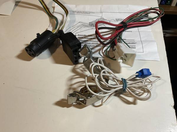 New. U Haul Trailer wiring adapter 4 round to 4 flat, Trailer brake jumper harness wiring harness and grounding clips. 2” chrome ball hitch.