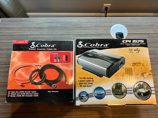 NIB Cobra CPI 1575 1500 Watt power inverter plus Cobra power inverter cable kit. Never used.